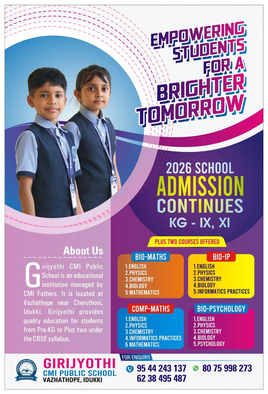Girijyothi CMI Public School, one of the most outstanding schools in Idukki .The education system, besides providing an all-round education intellectually, socially, emotionally and physically, also offers guidance in critical thinking, social openness and....