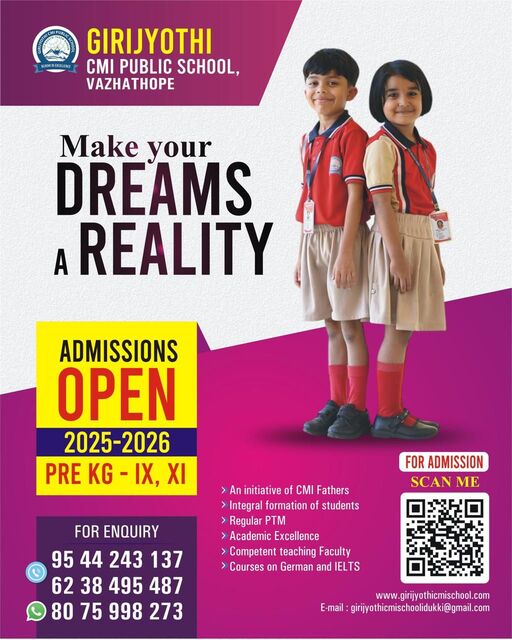 Girijyothi CMI Public School, one of the most outstanding schools in Idukki .The education system, besides providing an all-round education intellectually, socially, emotionally and physically, also offers guidance in critical thinking, social openness and....